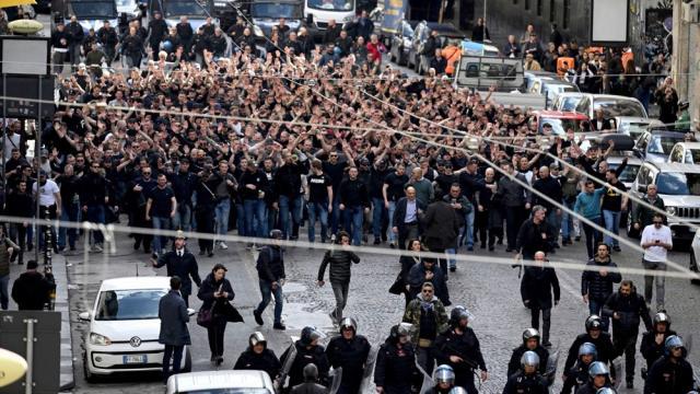 另一方面,亚特兰大与那不勒斯的支持者之间又相互仇视。每当那不勒斯前往贝尔加莫作战,主队的极端球迷总会高喊“维苏威火山爆发”——意大利南北发展水平差异带来的地域歧视,自然是这种对立的主要成因。亚特兰大恰好是那不勒斯上轮意甲的对手,当加斯佩里尼的球队抵达那不勒斯时,迎接他们的歌声是“我恨贝尔加莫”。那场比赛结束之后,一些亚特兰大球迷根本没有回家,他们已经准备好与法兰克福球迷“并肩作战”。